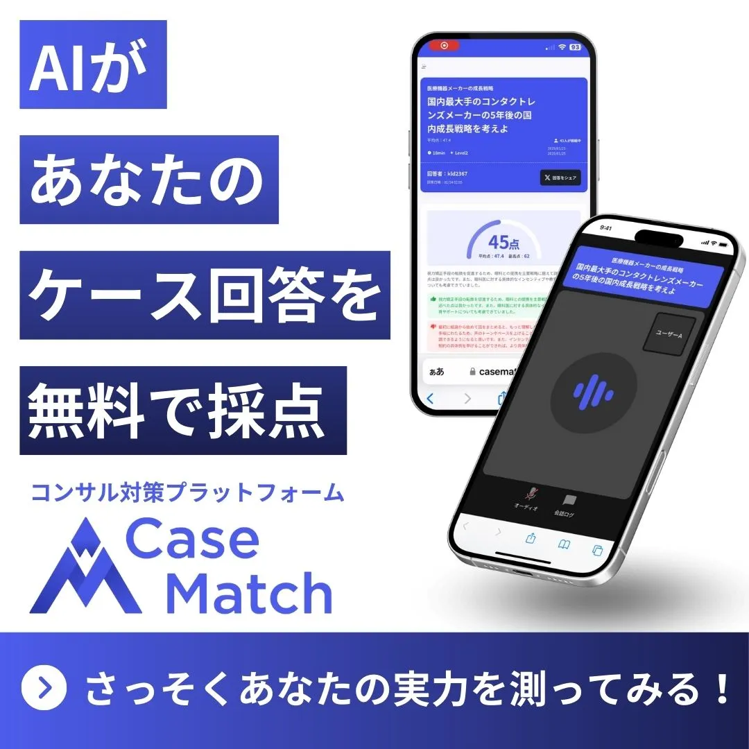 CaseMatchでは、実際の選考傾向に即したケース問題に無料でチャレンジできます。