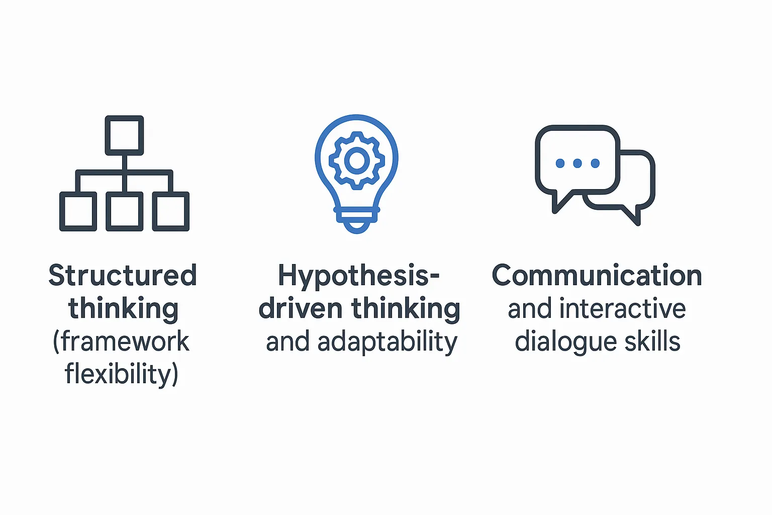 BCGに限らず、戦略系ファームでは思考をいかに構造的に整理できるかが大前提のスキルです。しかしBCGの場合は、フレームワークを“そのまま当てはめる”のではなく、状況に応じて自分で再構成する柔軟性がより強く求められます。