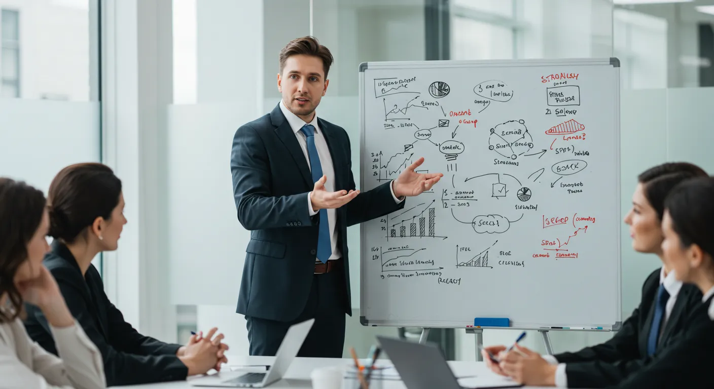 3Cで立てた仮説が実行可能で勝てるかを見極めます。強み(Strengths)や機会(Opportunities)を活かし、弱み(Weaknesses)や脅威(Threats)を回避する方向性を確定します。例えば「全国展開する店舗網(強み)+健康志向市場の拡大(機会)」を活用し、「高価格帯商品の経験不足(弱み)」や「原材料高騰(脅威)」を抑える方針を決めます。
