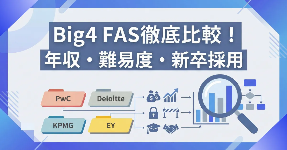 【Big4 FAS完全ガイド】PwC・デロイト・KPMG・EYを徹底比較|新卒採用・難易度・年収ランキングも!