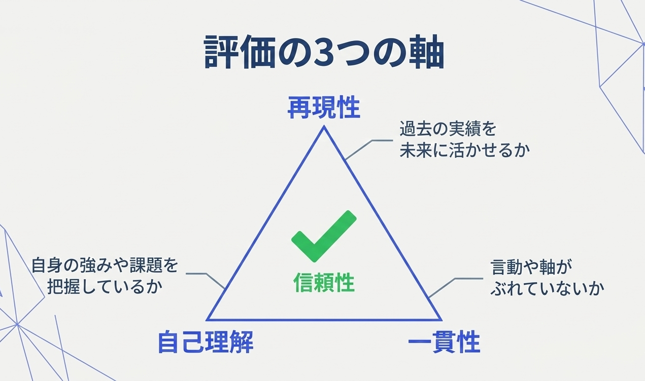 面接官が自己PRの信頼性を測るとき、意識しているのは次の3つです。