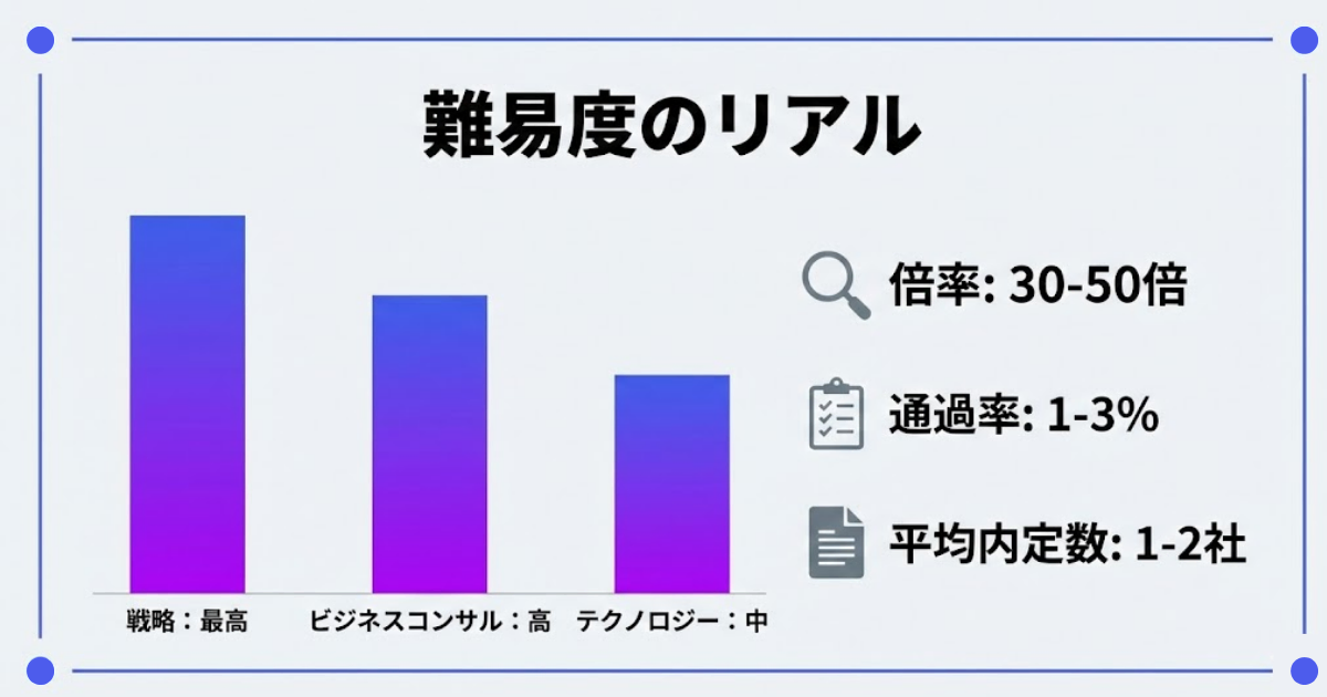 この記事では、応募倍率や年収のデータから、選考で落ちる典型的なパターン、未経験から受かった人の共通点、ケース面接の具体的な対策まで、転職活動で本当に使える情報をまとめています。