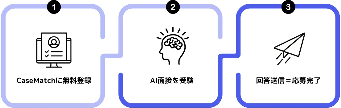 コンサルティングファーム様・大手事業会社様を中心に多くの企業様に導入いただいているAI面接プラットフォームであるCaseMatch独自の限定ルート。ぜひ、この機会を逃すことなく挑戦ください。