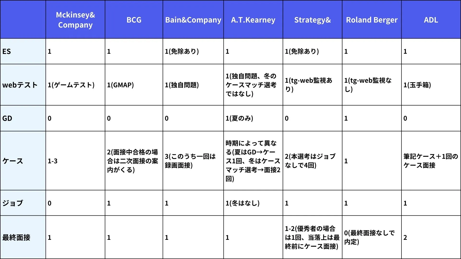 📊 【比較表つき】外資コンサル選考対策に役立つ情報まとめ
